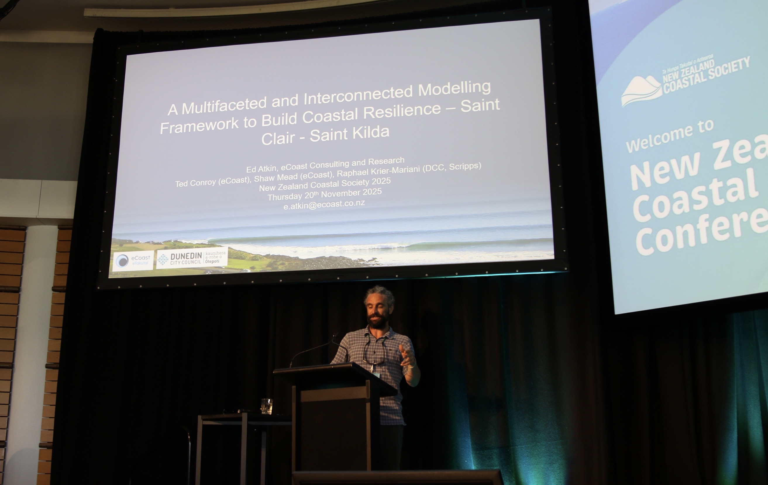 The conference brought together engineers, scientists, planners, consultants, and researchers from across Aotearoa—all committed to building resilient coasts and sustainably managing our marine environments. This year’s theme, “Navigating Change: Charting a Course for Our Coastal Future,” resonated strongly with eCoast’s mission. We were thrilled to share insights, reconnect with the coastal community, and support initiatives that strengthen coastal ecosystems and the people who depend on them.